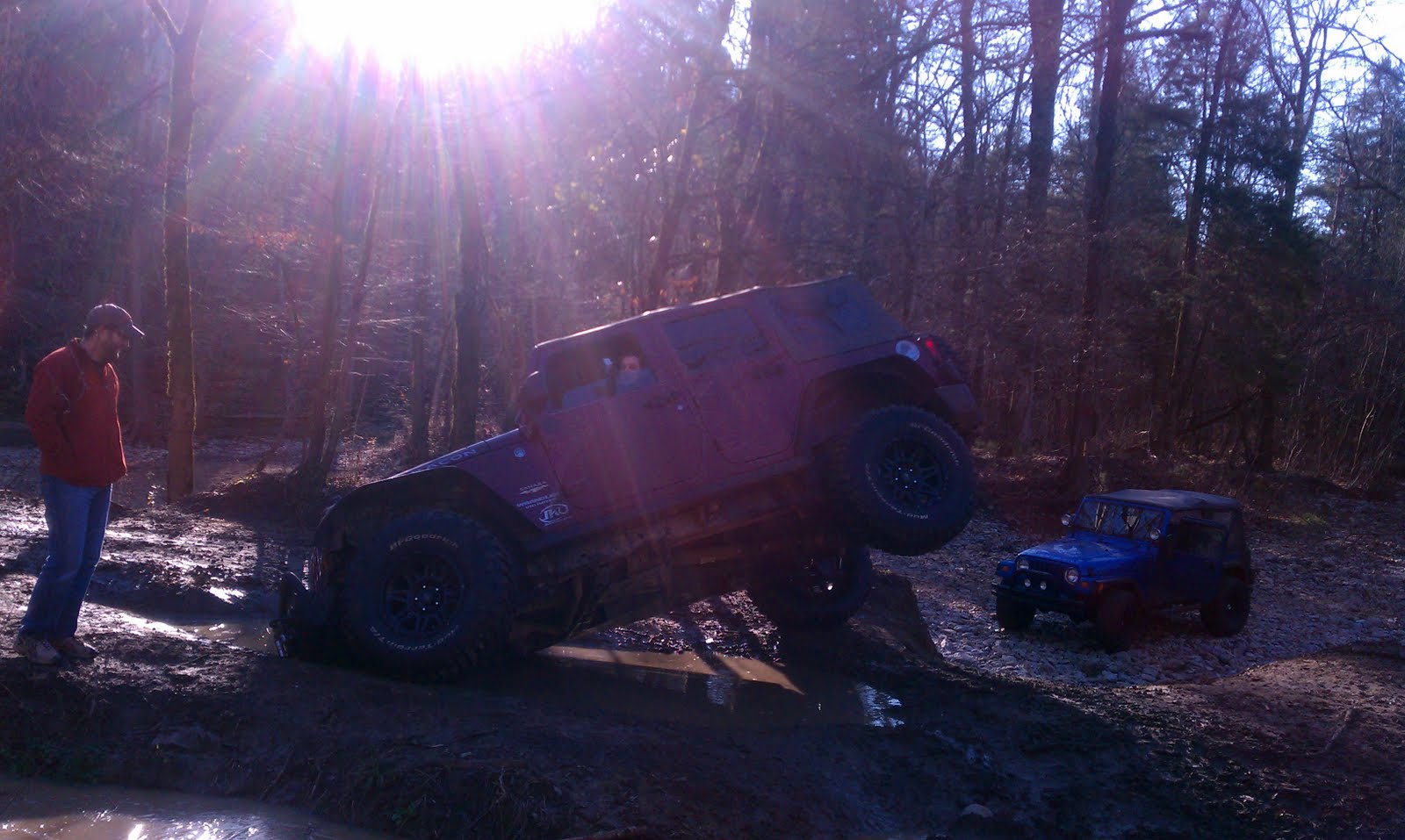 And this jam allowed the engineer boys to put their minds to work and come up with a solution to get this jeep out. I think he said it took about an hour for this one. :)